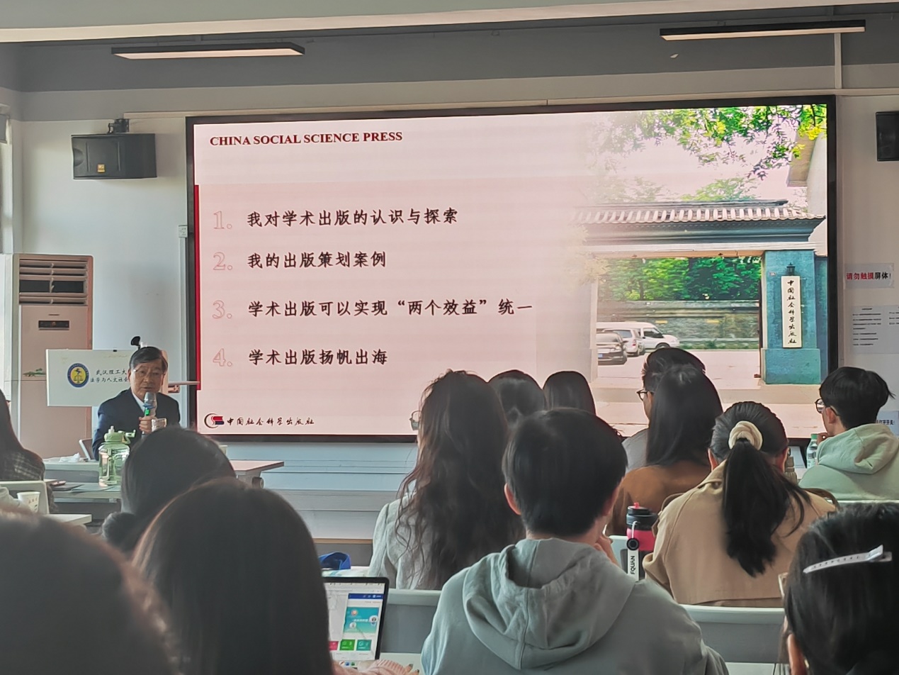 在互动环节,赵剑英教授针对师生提出的“国际传播中如何突破意识形态壁垒”“论文选题价值提升”“严肃著作市场化推广”“学术出版人才短缺”等问题,分别以“以学理表达替代政治宣传”“积累中迸发思想火花”“国家需求与大众消费结合”“完善人才激励政策”等观点回应,为师生提供实践思路。