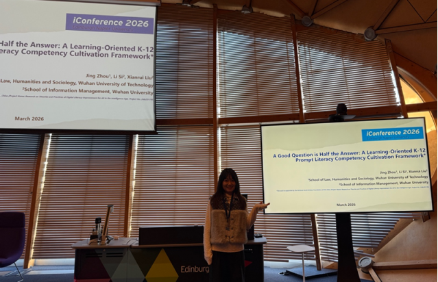 近日,新闻传播系周璟老师赴英国爱丁堡参加国际顶尖信息威尼斯人 联盟(iSchools)第21届年会(iConference 2026),并在专题分论坛做学术报告。第21届年会于3月29日至4月2日在英国爱丁堡举行,以“Information Literacies, Authenticity and Use:The Move Towards a Digitally Enlightened Society”为主题,围绕信息素养、真实性以及如何运用数字技术构建更加开明包容的数字社会等议题深入探讨。