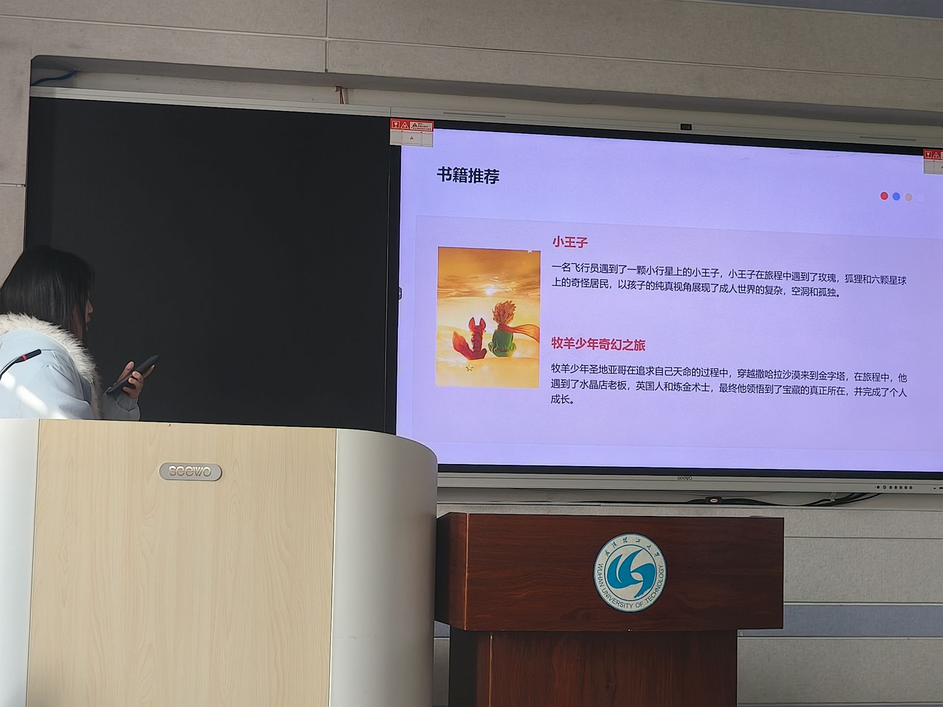 核心分享环节中,社团骨干依次围绕《小王子》《牧羊少年奇幻之旅》两部经典作品展开深度分享。分享者摒弃复杂的文学理论,以细腻生动的语言解读《小王子》中“爱与责任”的核心内涵,通过星球旅行、玫瑰与狐狸的故事,剖析孤独与陪伴、成长与坚守的人生命题;在分享《牧羊少年奇幻之旅》时,重点提炼“追寻梦想”的精神内核,结合书中圣地亚哥穿越沙漠的冒险经历,阐释“当你真心渴望某样东西时,整个宇宙都会来帮你”的生命哲思,将抽象的心灵感悟转化为贴近校园生活的成长启示,帮助同学们在文学共鸣中梳理自我认知。