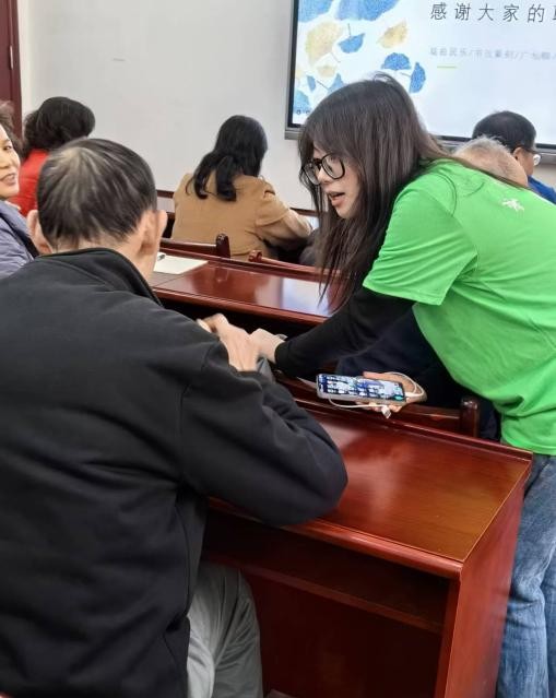 课堂上,退休老教师们发挥从教多年的学习功底,认真记录笔记、积极动手实操。遇到操作难题时,志愿者一对一耐心指导,从指令编写到视频剪辑的全流程,一步步带着老教师们练习,现场学习氛围十分浓厚。