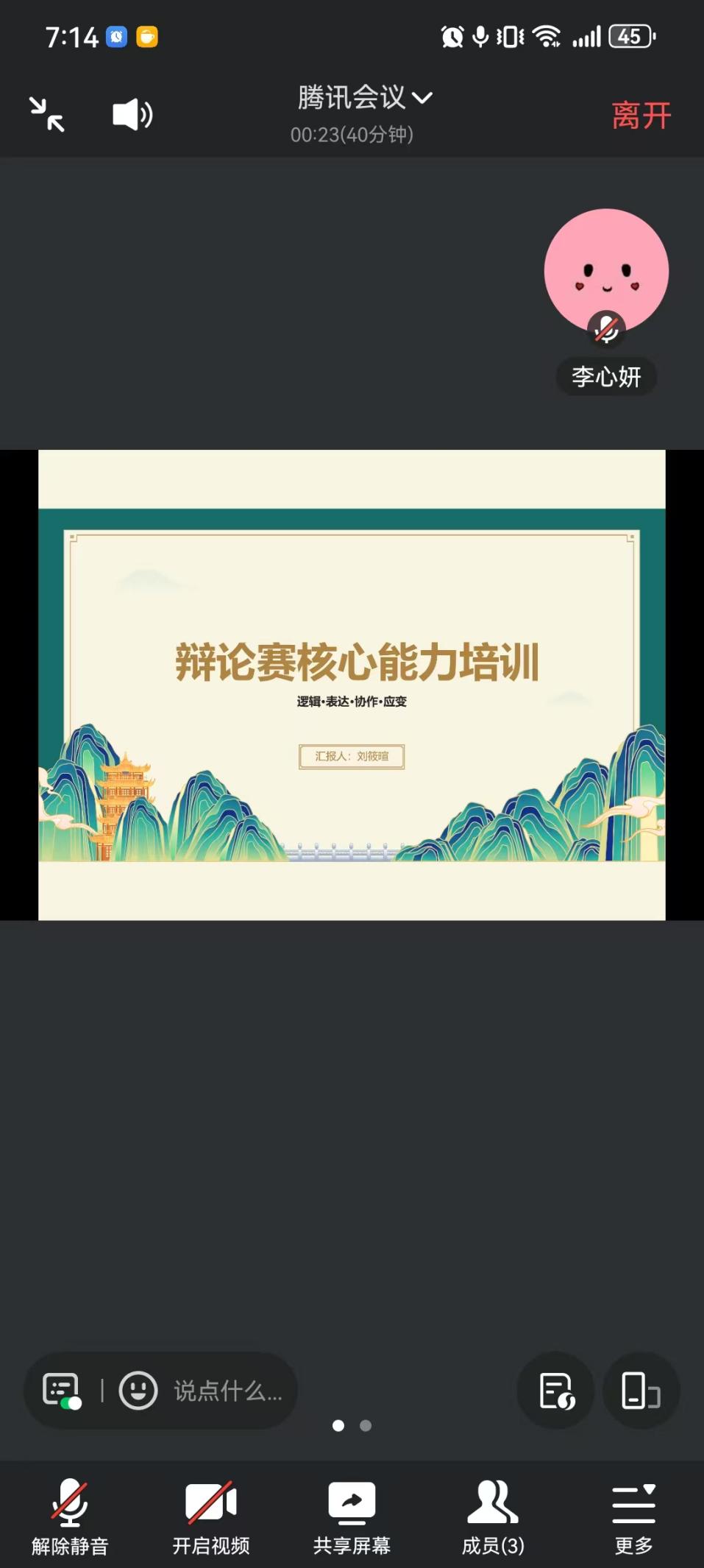 此次线上培训打破了地域限制,以灵活便捷的形式,为有意锻炼批判性思维与公开表达能力的同学提供了宝贵的学习机会。同学们纷纷表示,培训内容务实、针对性强,对今后参与学术讨论、面试答辩及日常工作沟通均有积极助益。活动主办方表示,未来将持续推出系列专题活动,进一步构建理性、包容的思辨交流社群。