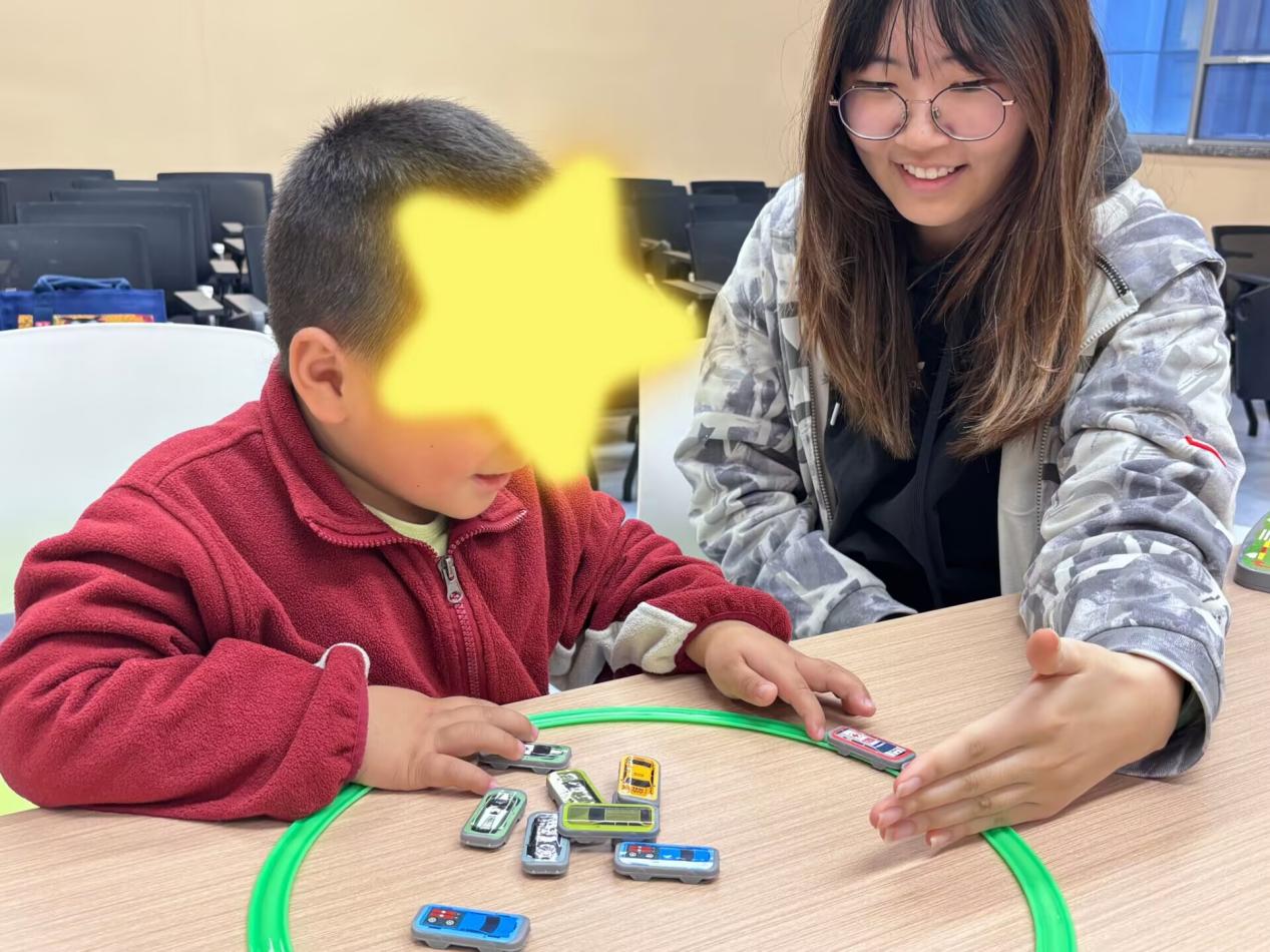 (图2-星宝在志愿者的陪伴下绽放笑颜)